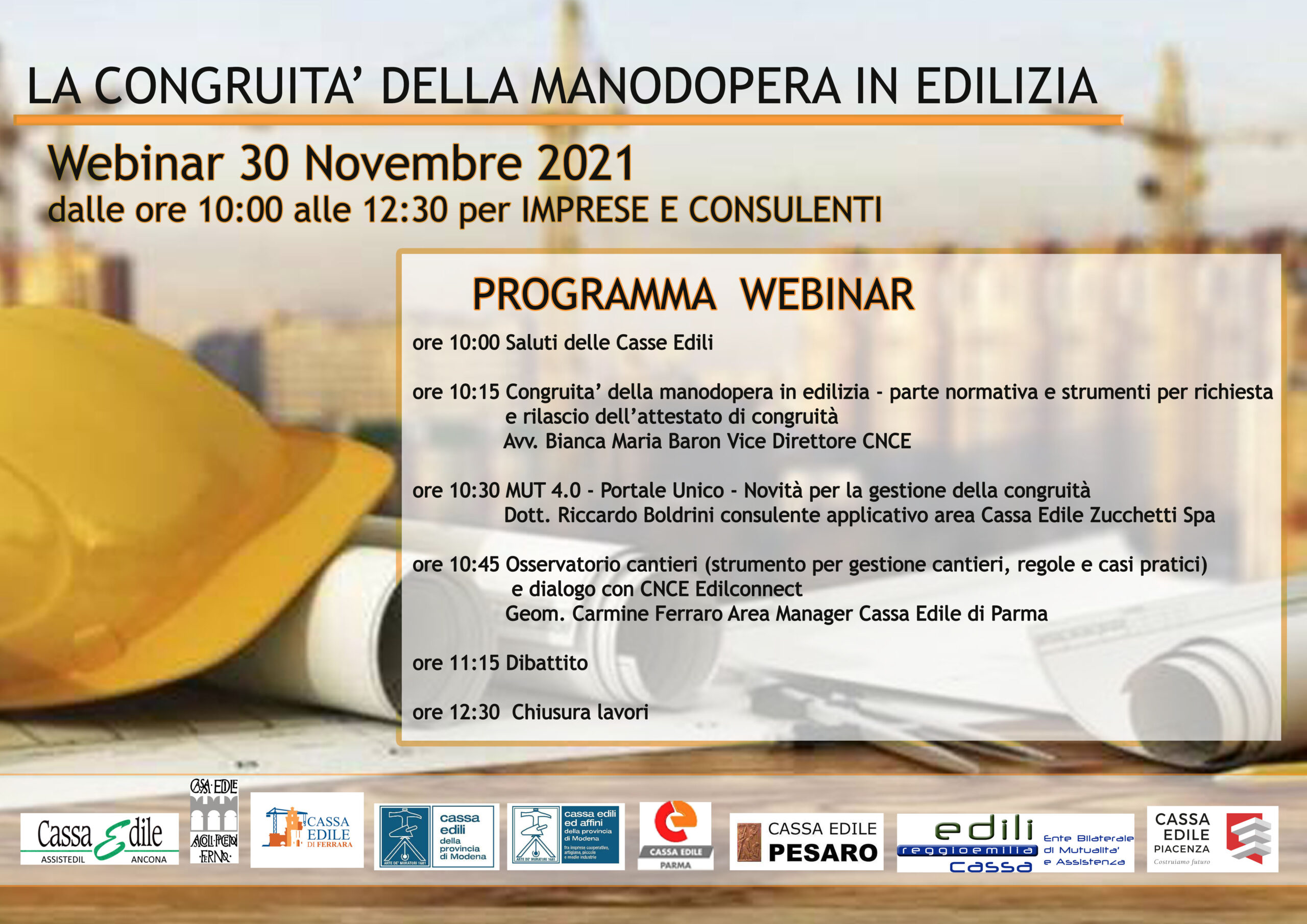 SCARICA LA LOCANDINA SCARICA IL PDF SEGUI IL WEBINAR La congruità della manodopera in edilizia Cnce aspetti normativi